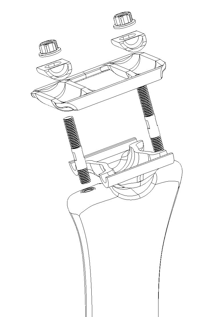 Mount your saddle onto the clamp parts, making sure the rail shape matches the cradles.